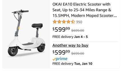 OKAI EA10 Electric Scooter with Seat$399Rowland Heights, CA
