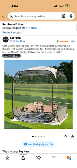 East Oak Weather Sports Tent for Fishing, Sports Event | Pop Up Bubble Tent Instant Sun & Rain Shelter | No Condensation, Spacious Interior, Ultra Vis$200Long Beach, CA