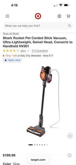 Brand New Never Used. Shark Rocket Pet Corded Stick Vacuum, Ultra-Lightweight, Swivel Head, Converts to Handheld HV301$160San Francisco, CA