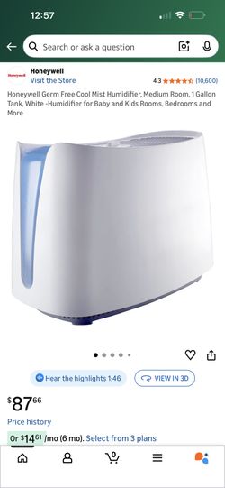 Honeywell Germ Free Cool Mist Humidifier, Medium Room, 1 Gallon Tank, White -Humidifier for Baby and Kids Rooms, Bedrooms and More$65San Francisco, CA