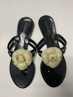 Chanel Black Rubber CC Camellia Thong Flats Size 38$599New York, NY