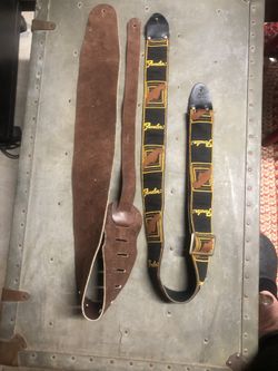 Vintage Guitar Straps Orig. FENDER Monogram Embroidered Logo Leather Guitar Strap plus brown Leather Guitar strap$50Lakeside, CA