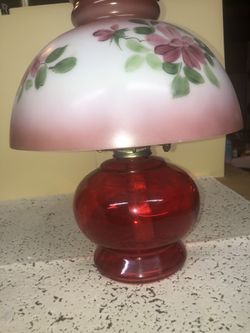 Vintage cranberry oil lamp (electrified) with hand painted shade.$90Lakeside, CA