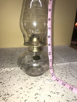 Vintage 1985 Clear Glass Austria Farms Lamp Light Kerosene Oil Lamp w Chimney.$35Lakeside, CA