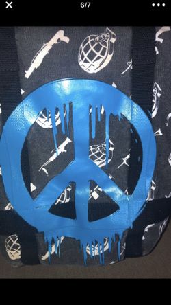 Peace sign graffiti guns bag love not war tote paint splatter dripping peace sign hippy purse beach bag unique tote$10San Diego, CA