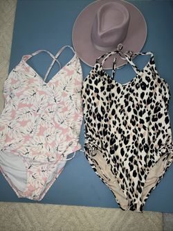 Kona Sol Woman’s One Pieces Xl Bathing Suits Animal Print And Monstera Plant Pink Boho$30Palm Shores, FL