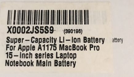 Battery for Apple Macbook Pro 15”$20Pomona, CA