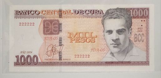 1000 pesos 2024 cuba Serie 222222 UNC$180Princeton, FL