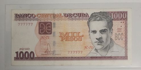 1000 pesos 2023 cuba Serie 777777 UNC$170Princeton, FL