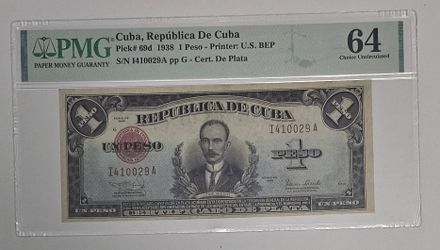 1 PESO 1938 CUBA CERTIFICADO DE PLATA$520Princeton, FL
