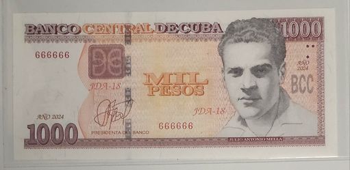 1000 pesos 2024 cuba Serie 666666 UNC$190Princeton, FL