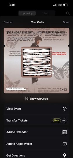 Phora Concert Tickets$50La Habra Heights, CA