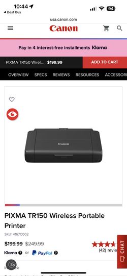 Cannon- PIXMA TR150 Wireless Inkjet Printer $80Brooklyn, NY