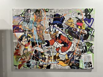 Disney Inspired Mixed Media Local Artist Canvas 3ft By 4ft Wall Art Donald Duck Mickey Mouse Jasmine Beauty And The Beast Newspaper Background$120Boynton Beach, FL