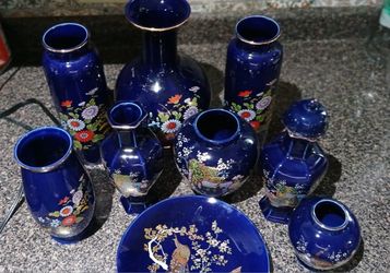 9 Piece set of Japanese painted blue colbot vases vintage$80Dallas, TX