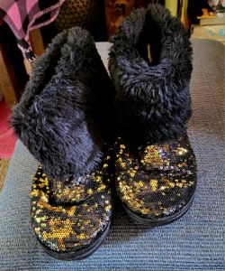Sparkly Gold/Black faux fur booties $12Brady, WA