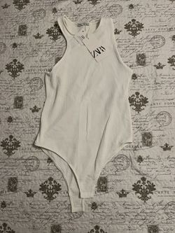 NWT Zara White Ribbed SLEEVELESS Cut Out Side Bodysuit Snap up bottom Size M$18Rowland Heights, CA