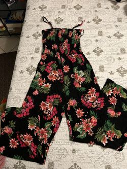 NWT Ambience Tropical Black Jumpsuit With Flowers And Palms Leaves Size M$15City Of Industry, CA