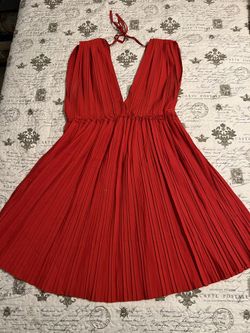 Zara Red/orange Pleated V-neck Pleated Cocktail Dress Size M$40City Of Industry, CA