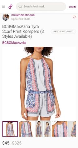Women's Size XS BCBGMAXAZRIA Pocketed Tyra Scarf Print Romper$15Salisbury, NC