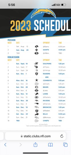 Chargers Tickets Vs Chiefs $175Artesia, CA