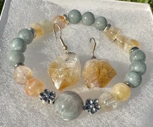 Citrine, Jade And Labradorite Bracelet And Citrine Earrings Set$45La Habra Heights, CA