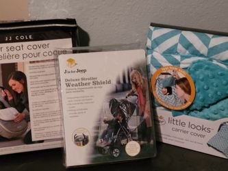 Baby Bundle JJ Cole Plush Car Seat Cover, Jeep Weather Shield and Infantile Car Seat Little Looks Carrier$70Frisco, TX