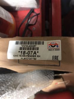 2012 New Aftermarket Honda Civic Rt Front Fender$30Vineland, NJ