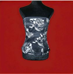 WHITE HOUSE BLACK MARKET Strapless Corset Top 100% Silk Blk/What Abstract Sz 2$29Spring Valley, CA