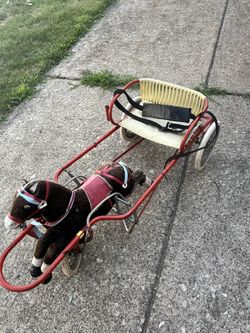 Vintage 1950’s Gumont Horse & Cart Pedal Car Made in Italay Brown Plush Horse $450Parma Heights, OH
