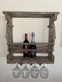 Wood rack for wine glasses and bottles$10Murrieta, CA