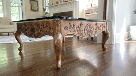 Oriental Carved Wood Coffee Table with Glass Top$30West Orange, NJ