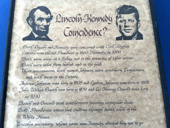 Vintage Framed Lincoln Kennedy Coincidence on Parchment Paper$15San Diego, CA