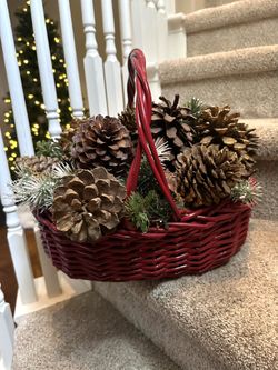 Christmas Holiday Pinecone Basket Arrangement - Vintage Red Woven Wood$50San Diego, CA