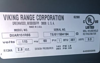 Viking 15” Undercounter Wine Cooler – Model DUAR151RSS – Stainless Steel$100Phoenix, AZ
