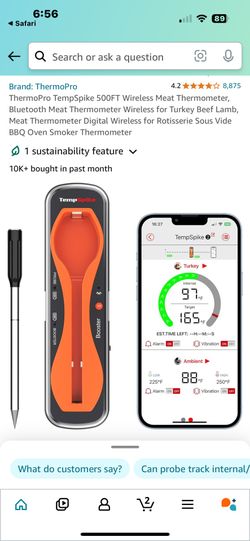 ThermoPro TempSpike 500FT Wireless Meat Thermometer, Bluetooth Meat Thermometer Wireless for Turkey Beef Lamb, Meat Thermometer Digital Wireless for R$45Oakland Park, FL