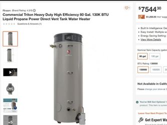 Commercial 80gal Hot Water Tank $5,000Menifee, CA