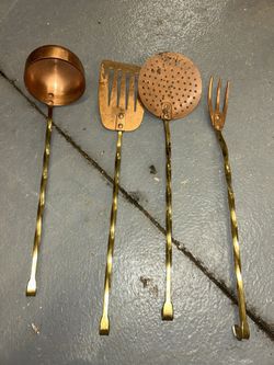 Vintage Douro Copper Cooking Kitchen Utensil Set/Copper Ladle/Copper Fork/Copper Flipper/Copper Strainer/Copper Brass Utensils$50Boise, ID