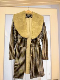 Bebe Green/Brown Trench Wool Coat w/Rabbit Fur Collar$80Miami, FL