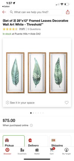 Framed Leafs Wall Art$40Rowland Heights, CA