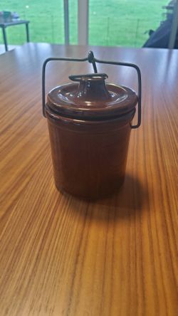 Vtg Brown Glazed Stoneware 3.5β Deep With Lid Cheese Salt Butter Crock Wire Bail$8Portland, OR
