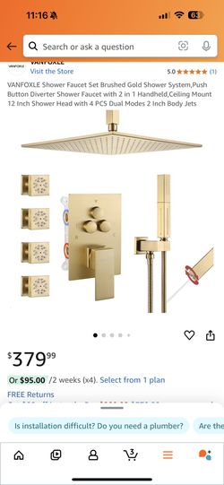 VANFOXLE Shower Faucet Set Brushed Gold Shower System,Push Button Diverter Shower Faucet with 2 in 1 Handheld,Ceiling Mount 12 Inch Shower Head with 4$80La Mirada, CA