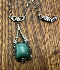 Art Deco 1930’s sterling silver and green Chalendory pendant necklace with Cz accents 15’ Chain$220Colorado Springs, CO