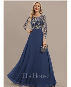 New With Tags: A-line Scoop Illusion Floor-Length Lace Chiffon Evening Dress - Size 12, Navy Blue.$125Renton, WA
