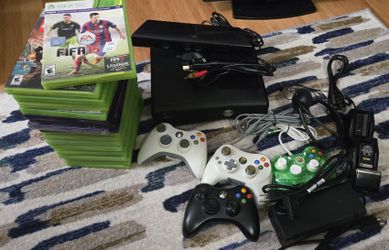 Xbox 360 S Microsoft Console System Black 250GB Complete Bundle: Games, Controllers, Nyko Charger, Kinect, Head Mic & All Cables Working$200Humble, TX