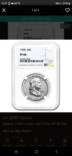 1958 Franklin Half Dollar PF-68 NGC$150Lutz, FL