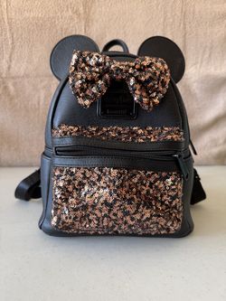 Disney Parks Loungefly Minnie Mouse mini backpack Belle bronze sequined bow$99Sugar Land, TX