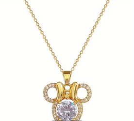 New Disney Minnie Mouse Bow Zircon Necklace Elegant Clavicle Chain Synthetic Gem$10Bellflower, CA