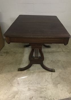 Antique dinner table (42” long x32” wide x29” high), 14” leaf and table top padding.$30Hamilton, OH