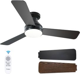 Ceiling Fans with Lights, 42 inch Low Profile Ceiling Fan with Light and Remote Control, Flush Mount, Reversible, 3CCT, Dimmable, Noiseless, Black Cei$45Ontario, CA